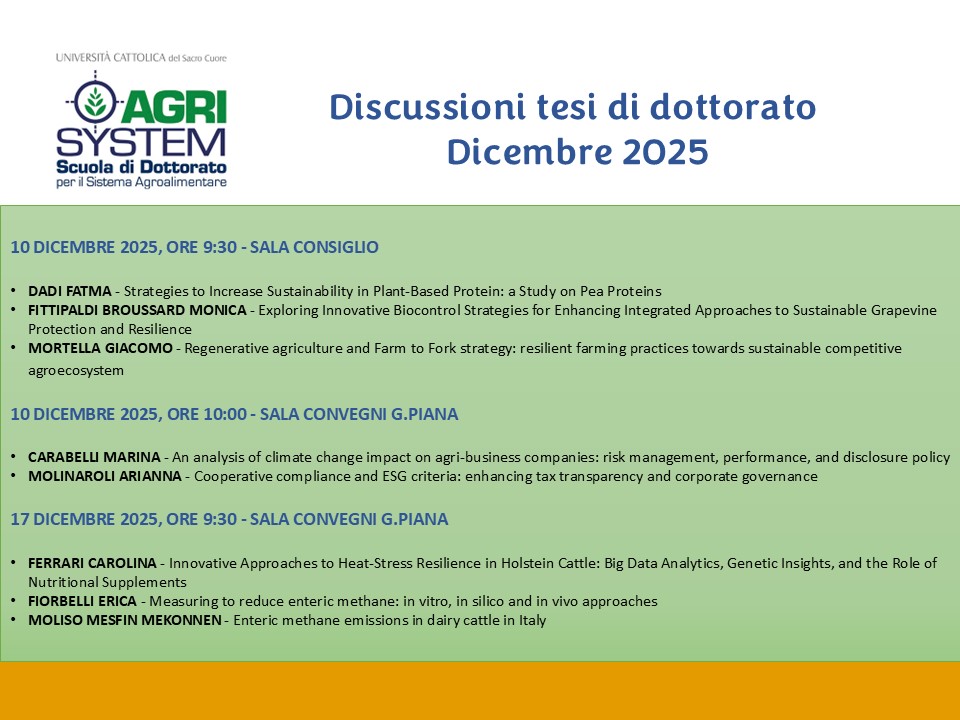 - Scuola di Dottorato per il Sistema Agroalimentare AGRISYSTEM